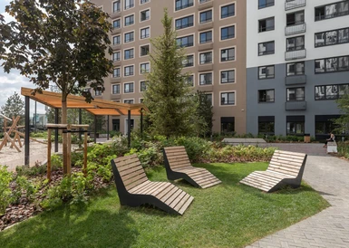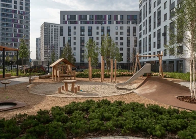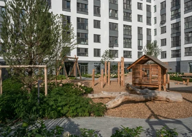 Двор в Бруснике закрыт от машин, посторонних людей и хорошо просматривается с любой точки. Дети играют и гуляют в безопасности. Во дворе растут высокие деревья и цветы. Нет ни одного темного угла.